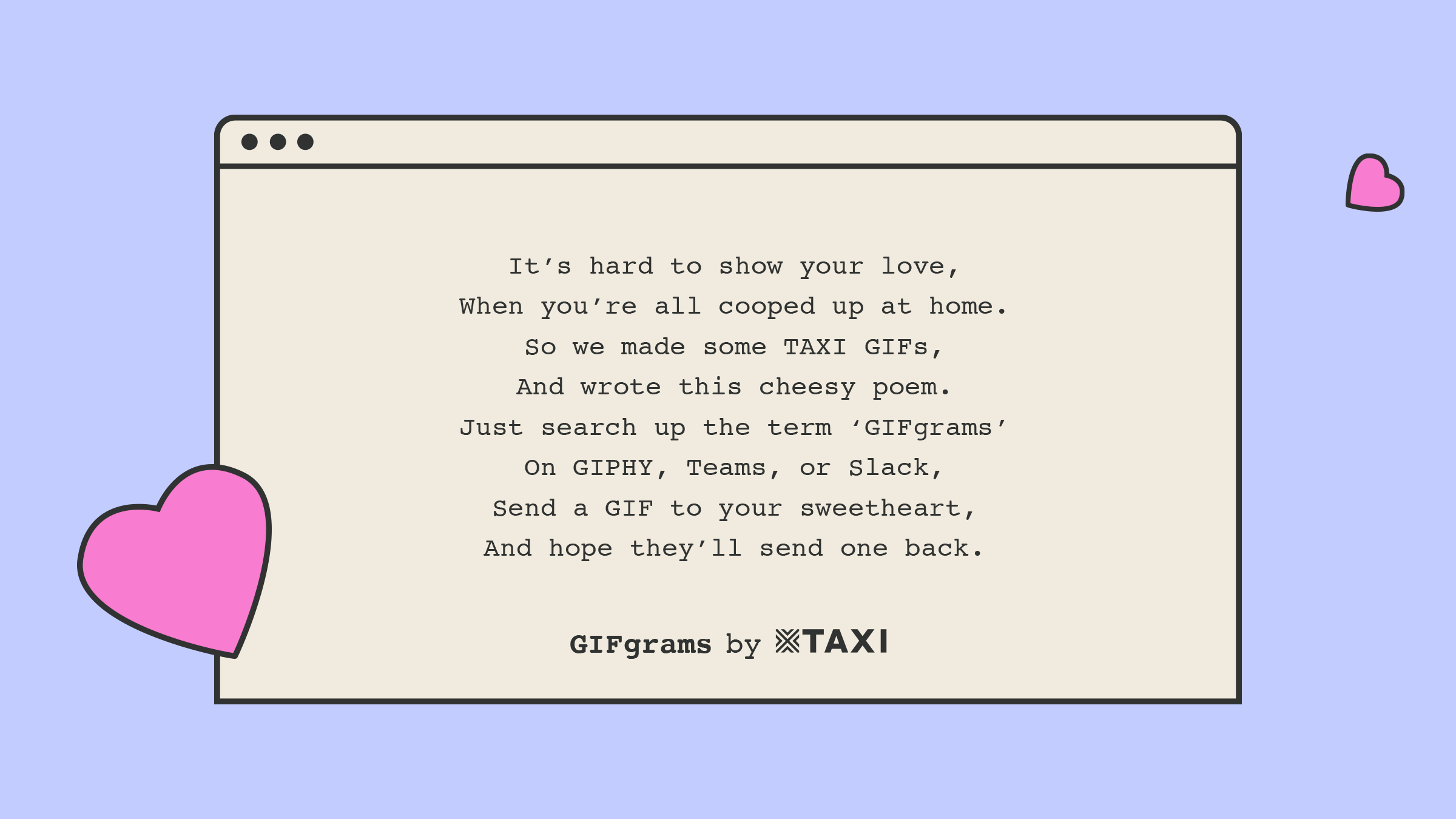 During COVID we were asked to create some Valentines Day cards for our fellow TAXI employees while we were still all stuck at home.