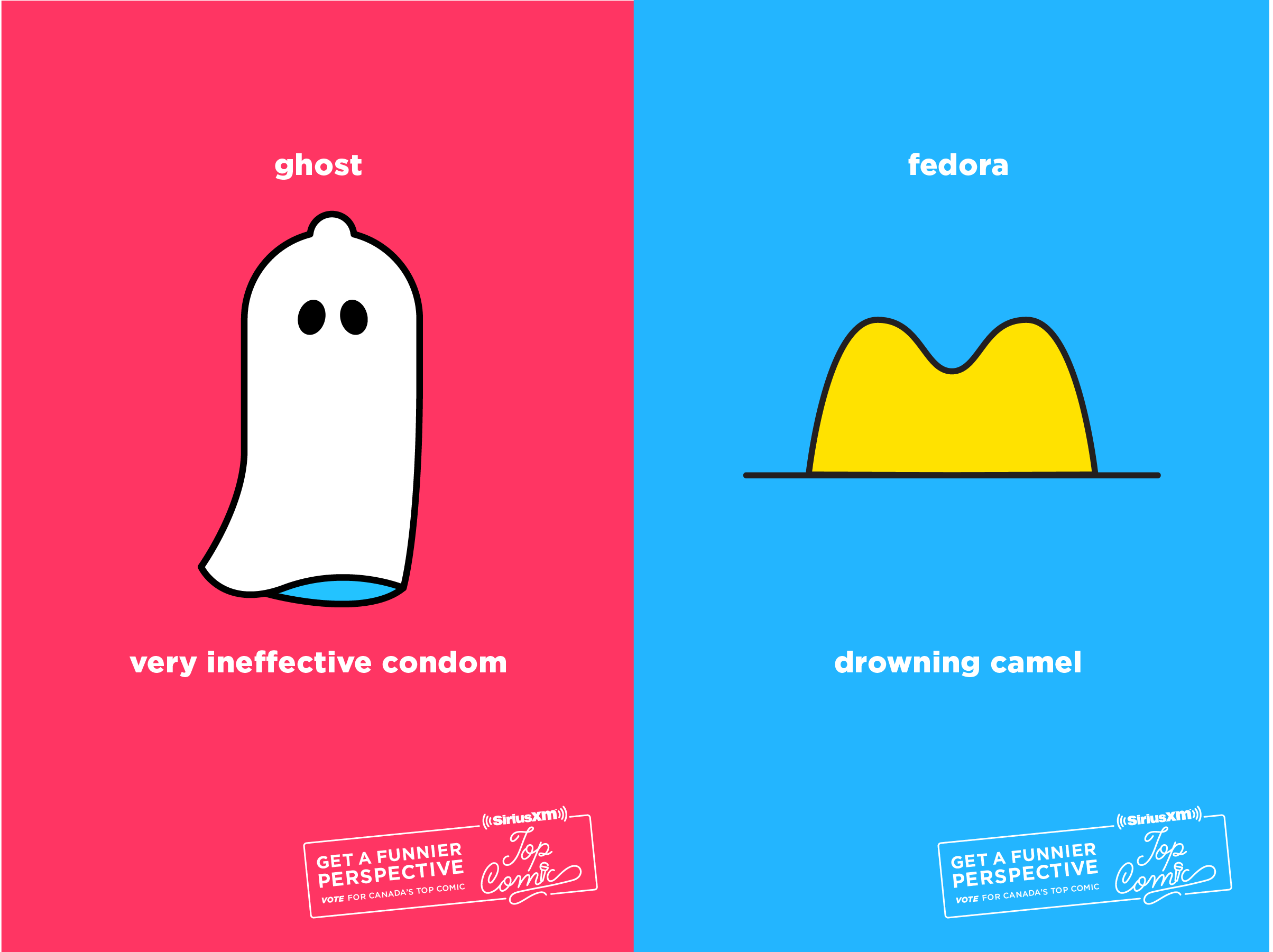 While the fedora is already hilarious in and of itself, to promote SiriusXM’s Top Comic competition we wanted to see if we could make it even funnier. Using simple illustrations, we encouraged people across the country to Get a Funnier Perspective and vote for Canada’s next top comedian.